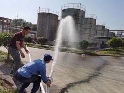 根據(jù)企業(yè)應(yīng)急預(yù)案要求及安全計(jì)劃安排,安全上樹立憂患意識,做到常備不懈;5月12日公司安環(huán)部組織當(dāng)班操作工、動(dòng)力部安環(huán)部、生產(chǎn)部、倉管人員進(jìn)行重大危險(xiǎn)源噴泡沫應(yīng)急演練。